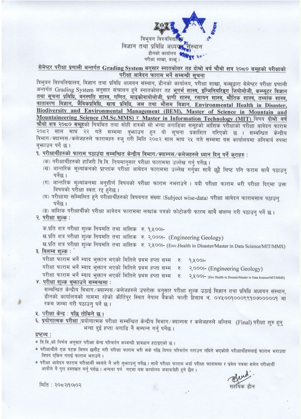 M.Sc IV Semester-2080 Form Fill Up Notice